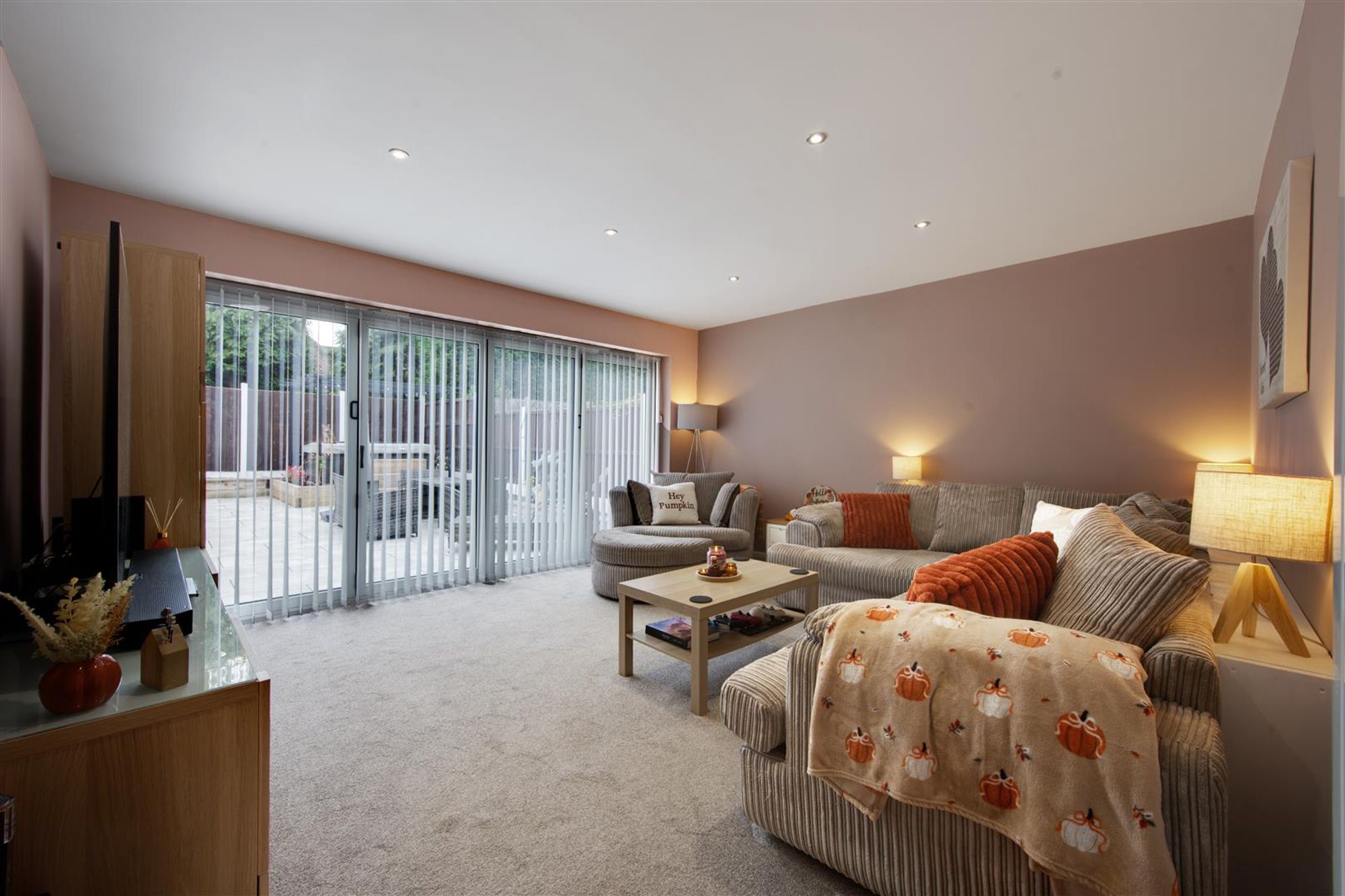 At the rear, the main lounge is a generous retreat which houses the current large corner sofa, cuddler chair and media wall with ease. Bifold doors spanning the entire back wall open onto the south-facing garden, creating a seamless indoor-outdoor experience. Whether hosting summer gatherings or enjoying a quiet autumnal evening, this space is both cosy and expansive, pre-wired for Virgin Media and Sky TV.