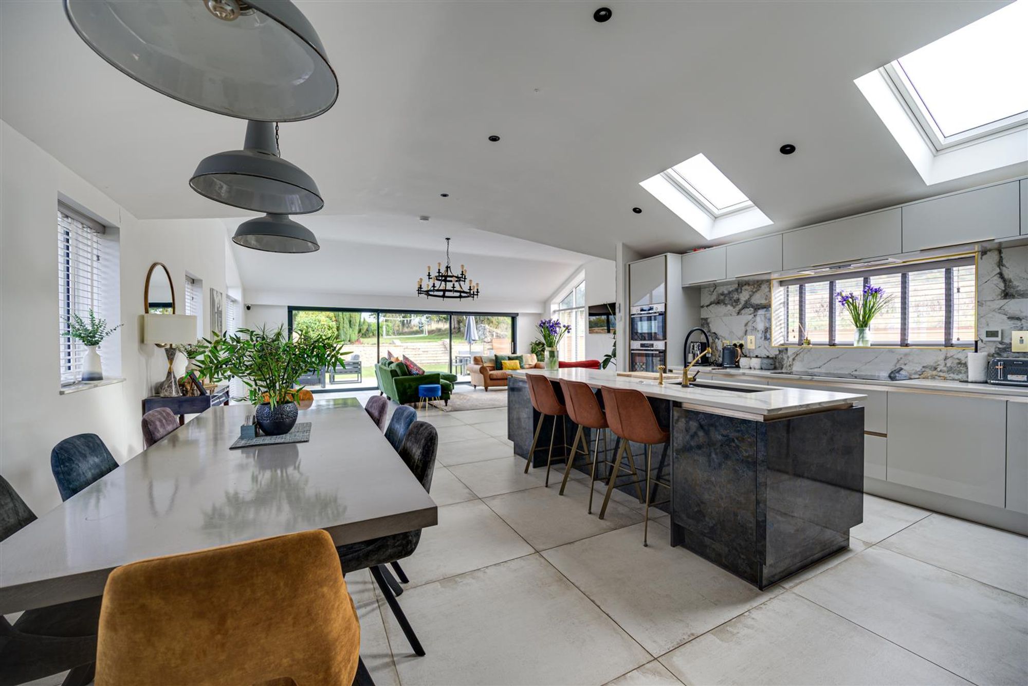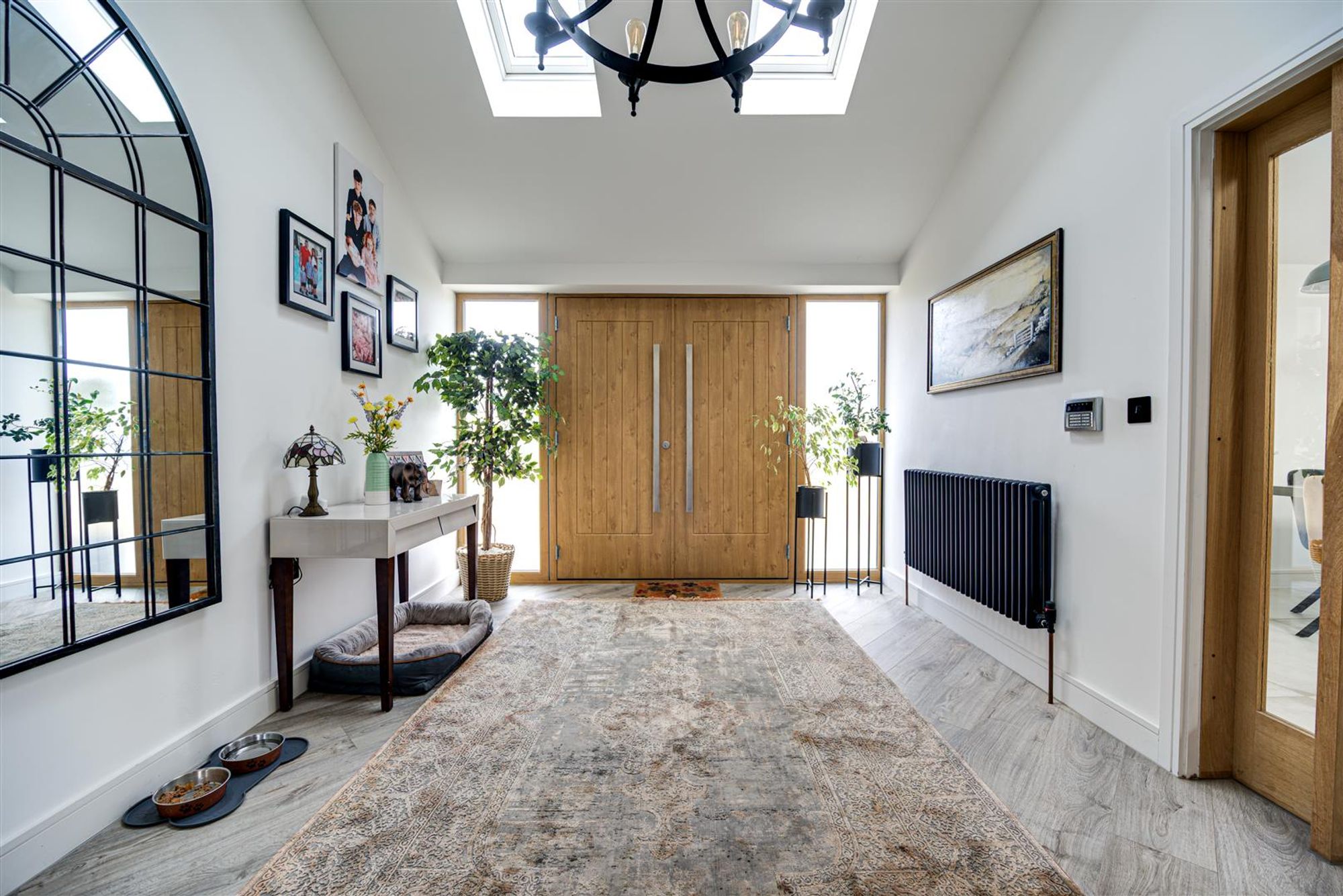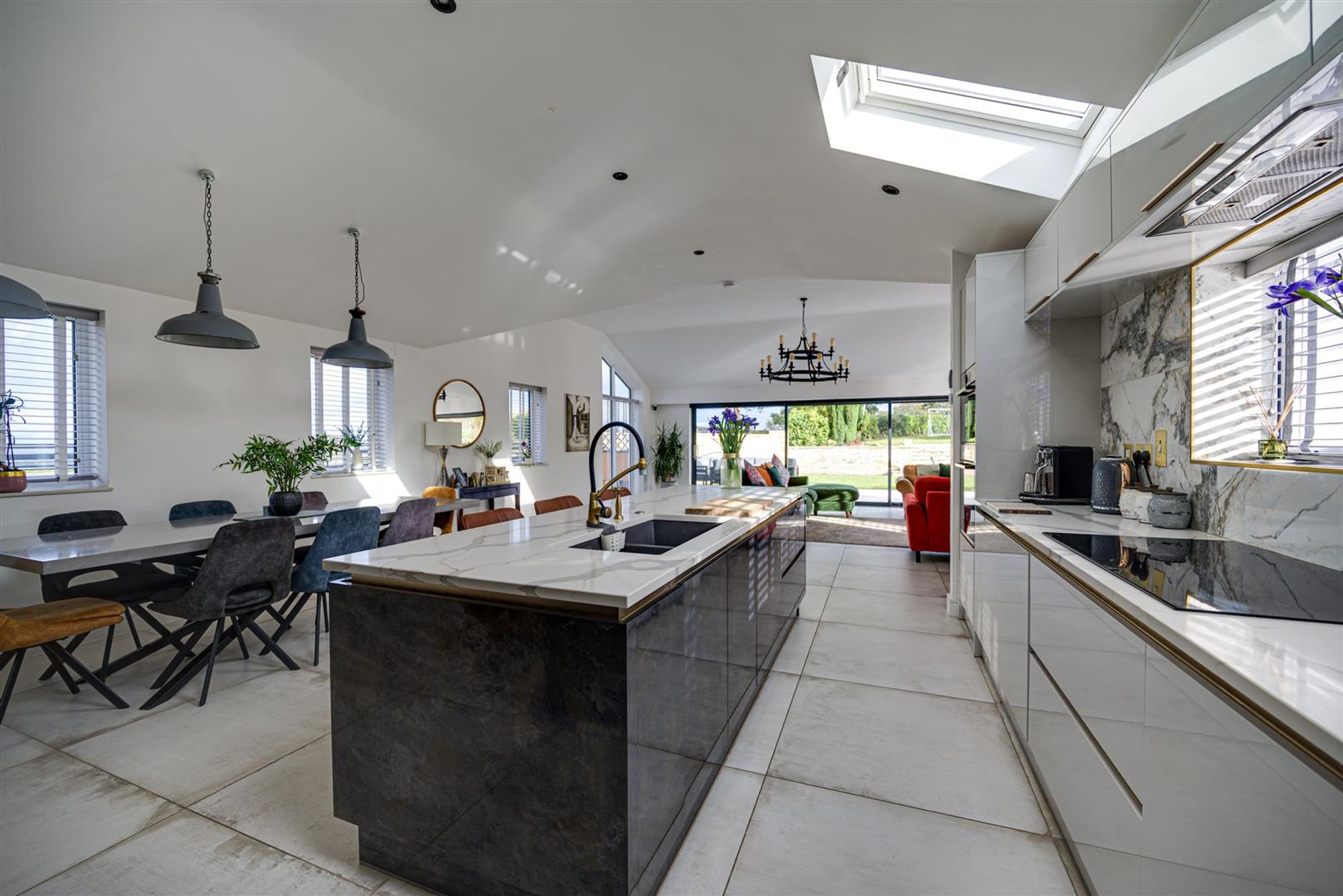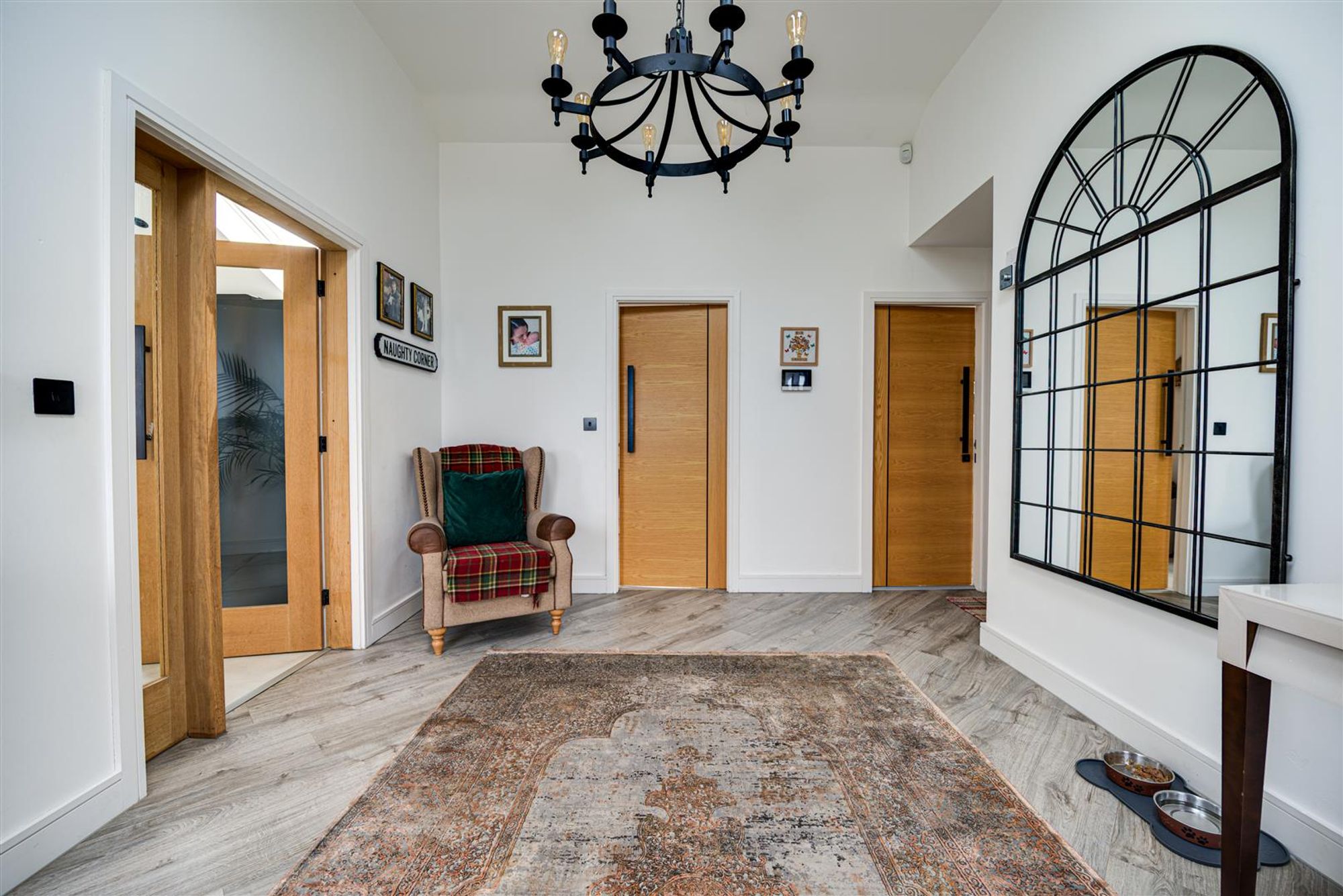 'Sycamore Lodge' is a true masterpiece offering the most discerning buyers a luxurious lifestyle ready to enjoy from the moment you move in. Having been meticulously crafted with no expense spared, the home exudes quality with classic styling throughout. Situated on an exclusive and peaceful road containing just a handful of established homes, the kerb appeal of the home is striking and sure to put a smile on your face every time you arrive! Set in pleasant gated grounds of formal gardens, patios and a driveway, the property has been crafted with the panoramic reaching views firmly in mind and these will wow your friend! Of particular note is the luxury living kitchen fitted with stunning work surfaces, bespoke cabinets and doors, feature glazing and vast sliding doors onto the terrace. There are four double bedrooms and three luxury bathrooms to satisfy many lifestyles and outside, set neatly next to the home is a vast detached garage building that must be seen to be believed! Needless to say, the garage is equally as handsome as the house.