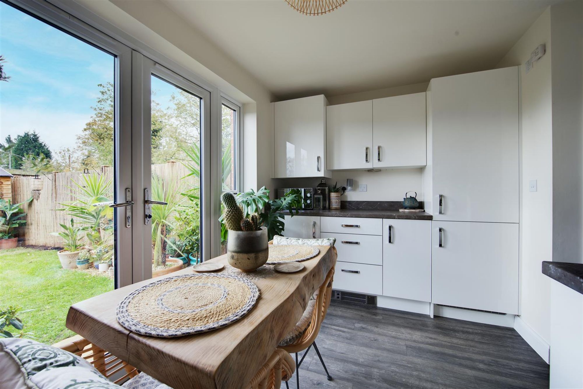 Accompanying the home are a number of feature to note, some of which include:- energy efficient double glazing & gas central heating, lvt flooring throughout the entire ground floor, a pleasant lounge with feature staircase, an open-plan dining/kitchen at the rear of the home complete with a contemporary high-gloss fitted kitchen with contrasting preparation surfaces, a wealth of storage and integrated appliances plus French glazing to the rear garden. In addition there is a handy downstairs cloakroom with feature décor & white sanitary suite.