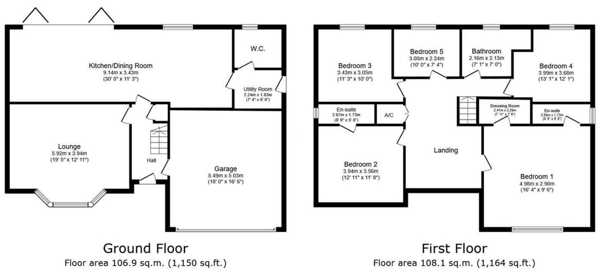 The master bedroom enjoys a huge walk in dressing room along with one of the three luxury bathrooms whilst the remaining four bedrooms are all of double proportions and enjoy excellent views of the established local area.