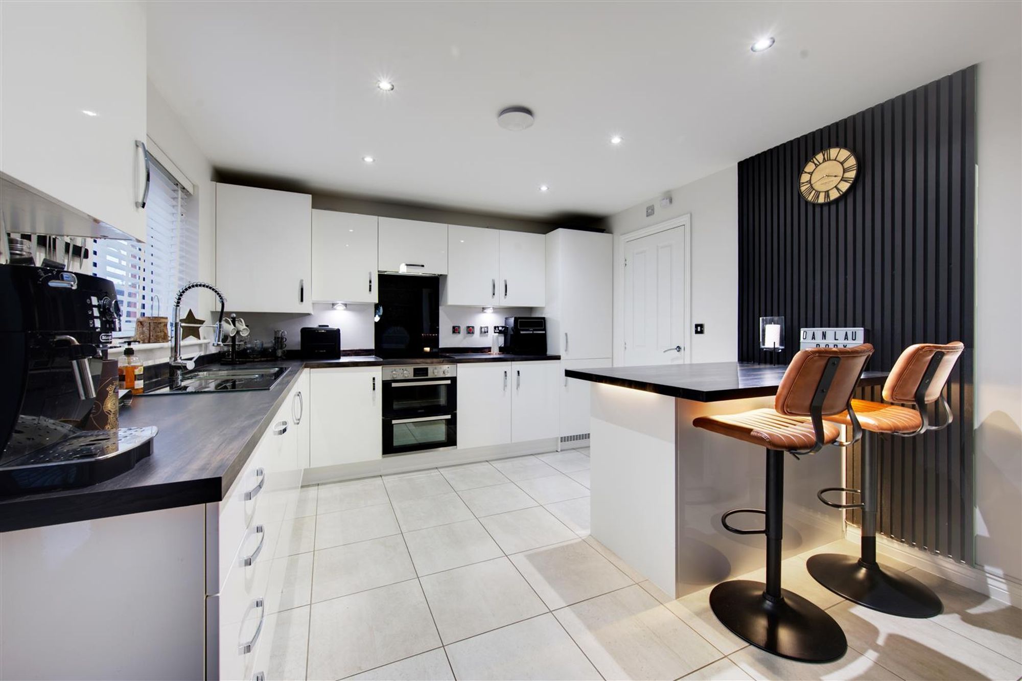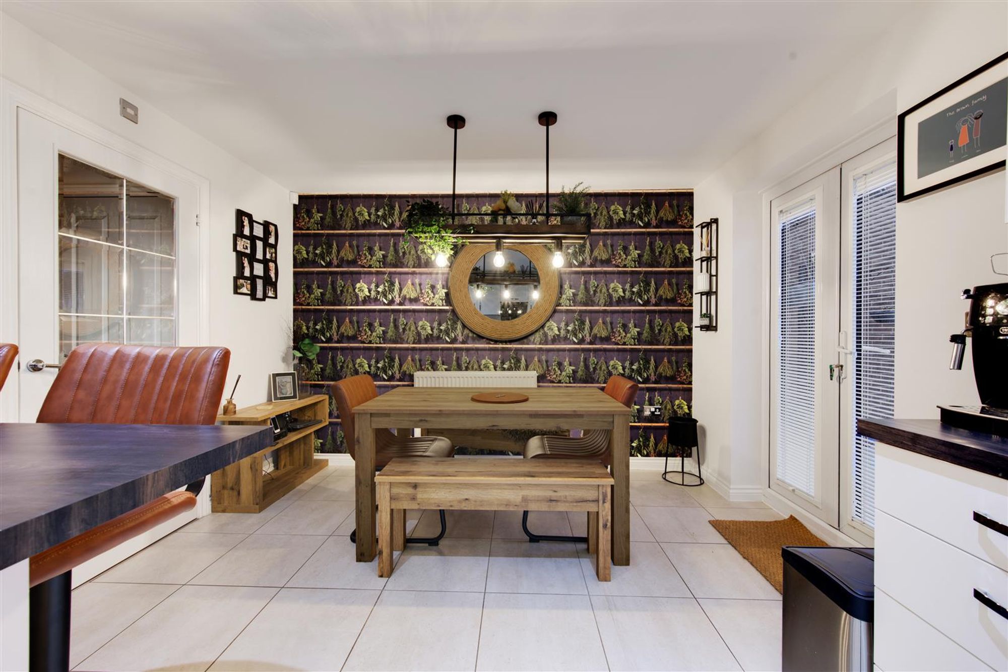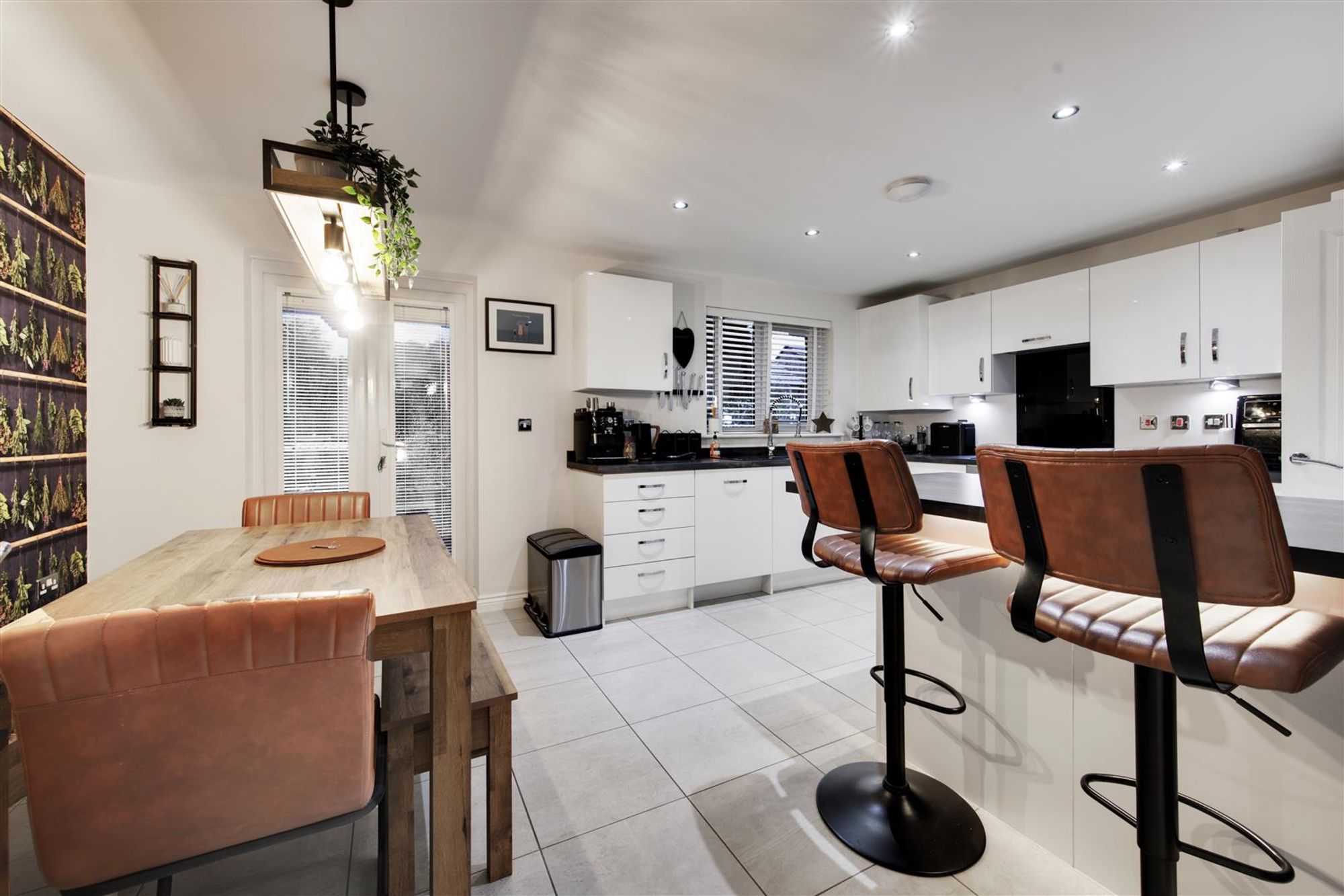 Accompanying the home are a number of features to note, some of which include: Immaculate decor throughout a welcoming entrance hall with decorative wall panelling, a large immaculately presented ground floor WC, a generous lounge towards the front of the home with beautiful decor, further wall panelling and bay window. Towards the rear of the home, the social open-plan kitchen diner can be located complete with a high-gloss fitted kitchen, plenty of storage and a wealth of integrated, branded appliances. The entire space has a georgeous tiled floor and the dining area has French doors leading to the rear garden and a separate utility keeps this entire space fully organised.