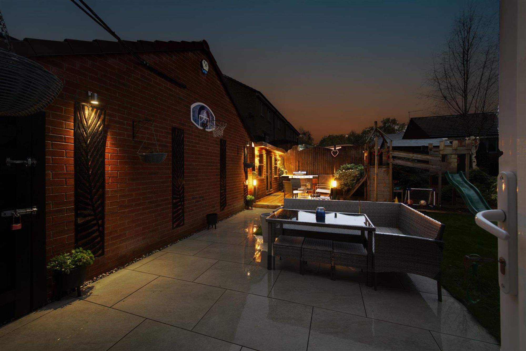 Externally, the home has an extended driveway to the front providing several parking spaces with feature wall lighting and a detached single garage with light and power. The west facing rear garden has been skilfully landscaped with a variety of seating areas including a porcelain patio and a raised decked area, perfect for entertaining! In addition, there are beautifully stocked beds & borders plus a handy, versatile cabin at the foot of the garden.