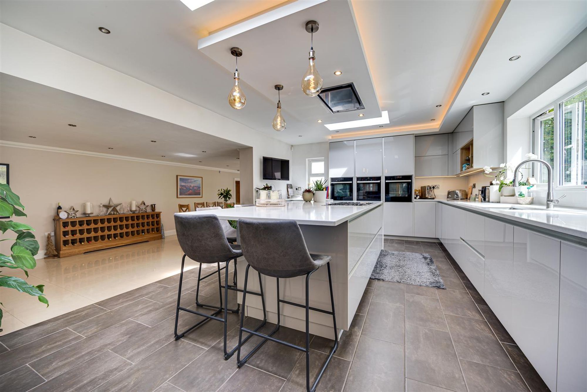 Once through the front gates you enter a vast driveway leading to a vast garage and the kerb appeal immediately becomes clear as the well kept grounds and views emerge almost every way you look! The grounds are one hugely impressive factor of this luxury home and comprise formal gardens, patio areas, terraces and much more, all of which enjoy fabulous views and complete privacy. The internal accommodation is extremely well proportioned and this becomes clear from the moment you enter the light and airy reception hall. From the hallway you can access the several reception rooms, mind blowing living kitchen and all the impressive bedroom suites, two of which enjoy front balconies that add a wonderful lifestyle touch of luxury! Of particular note just has to be the voluminous sitting/family/entertaining space to the rear of the home, the atmosphere, views and specification of this space just has to be seen to be believed and feature glazing facilitates such a wonderful feeling of bringing the outside in!