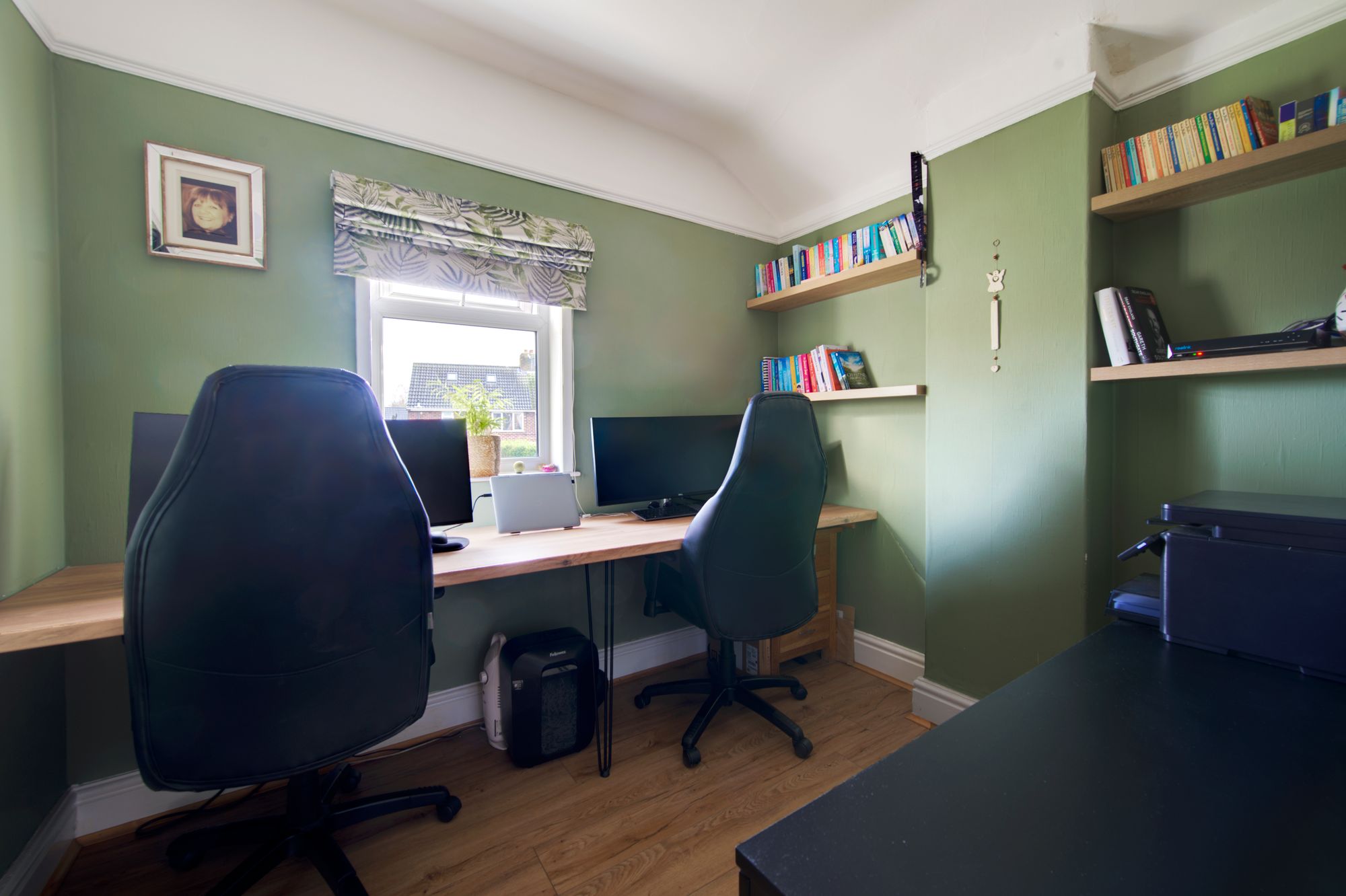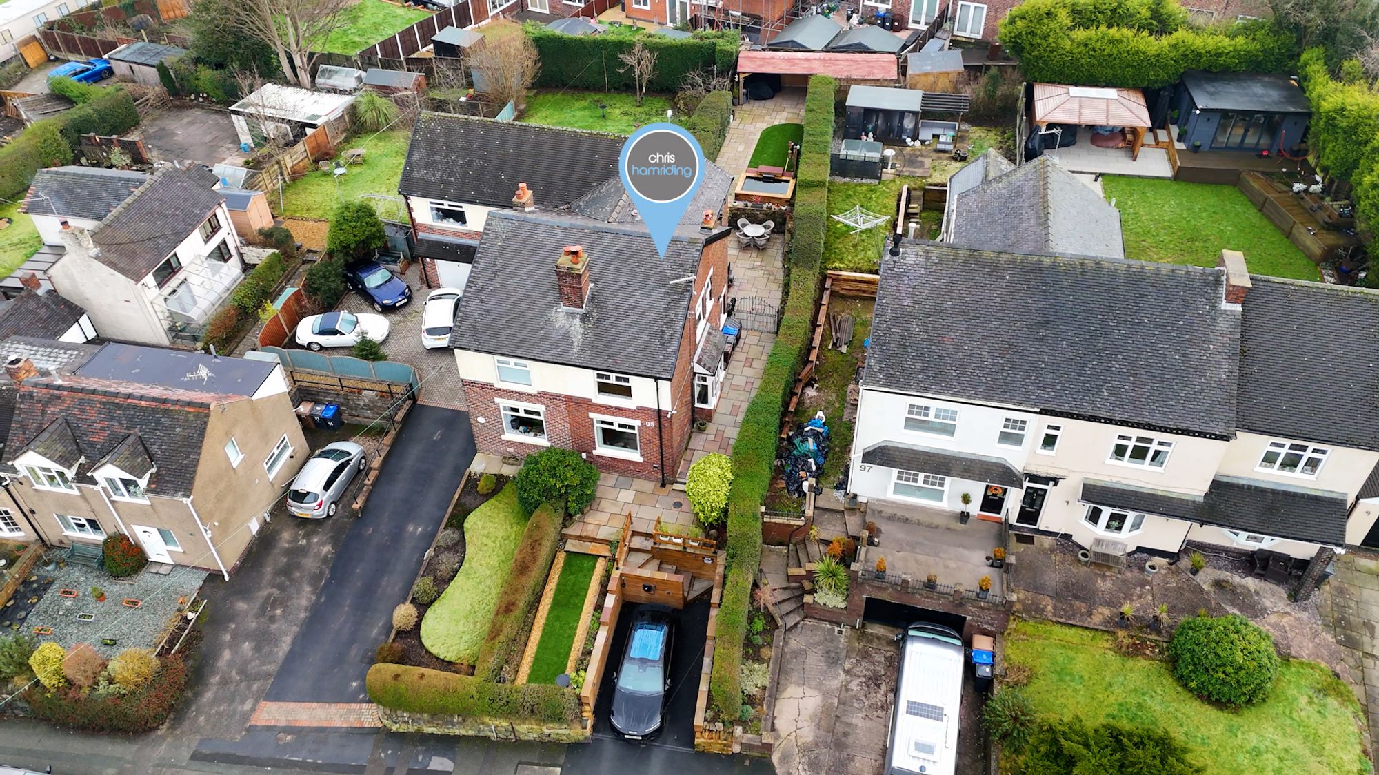 Modern upgrades have been thoughtfully incorporated and include PVC double glazing, gas-fired central heating, designer radiators, feature wall panelling, a stylish contemporary bathroom and a fitted kitchen with timber preparation surfaces. The property occupies a generous plot that has been comprehensively landscaped to create impressive yet low-maintenance outdoor spaces, with Indian stone patios, natural stone walling and artificial lawn forming attractive zones for entertaining and relaxation. A timber summerhouse and garden store/office provide excellent functionality and an all-weather retreat, enjoying views towards Mow Cop Castle The front garden has been equally enhanced, offering a parking bay with EV charger, contemporary fencing, stone walling and established greenery. CCTV is also installed.