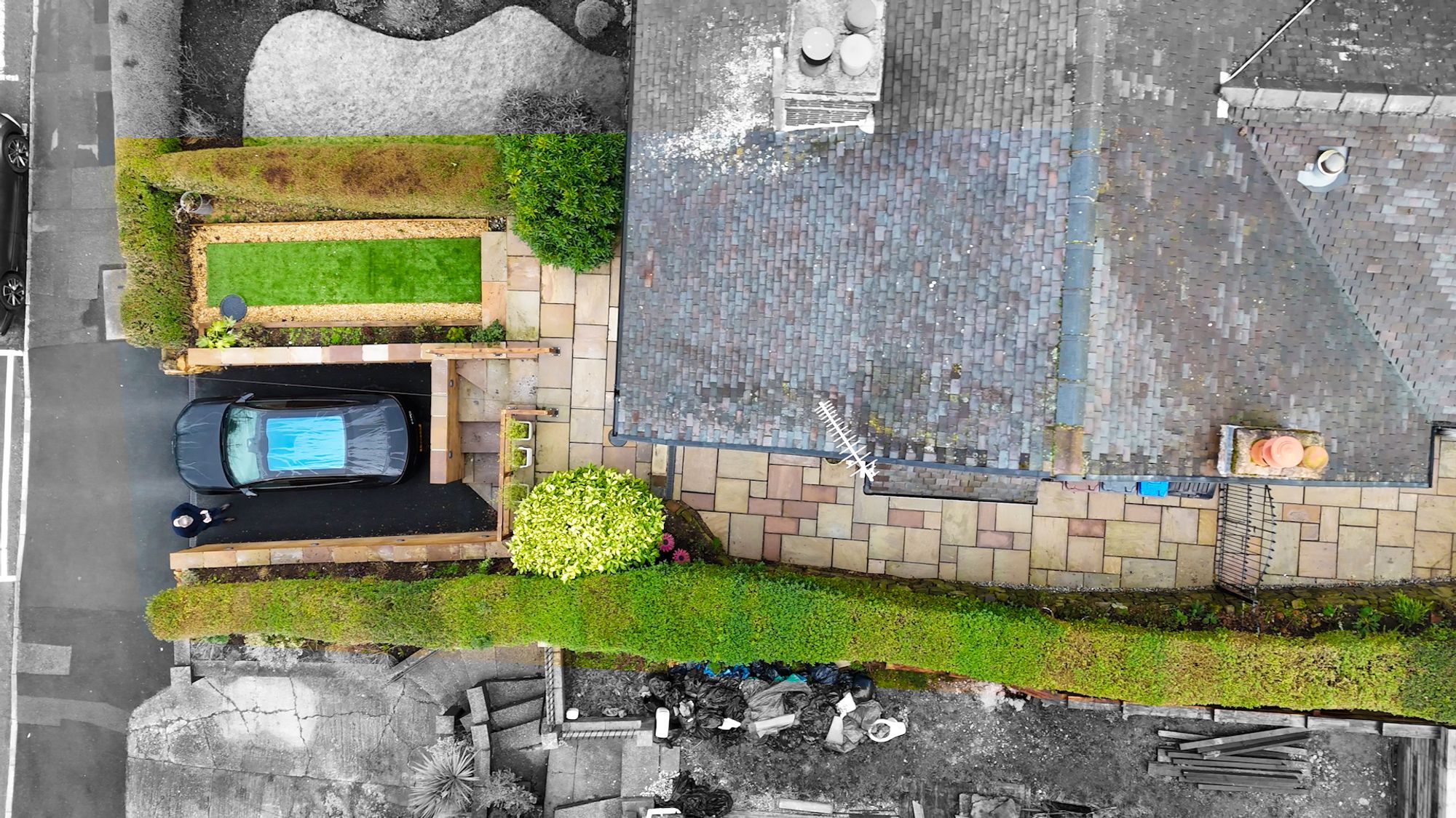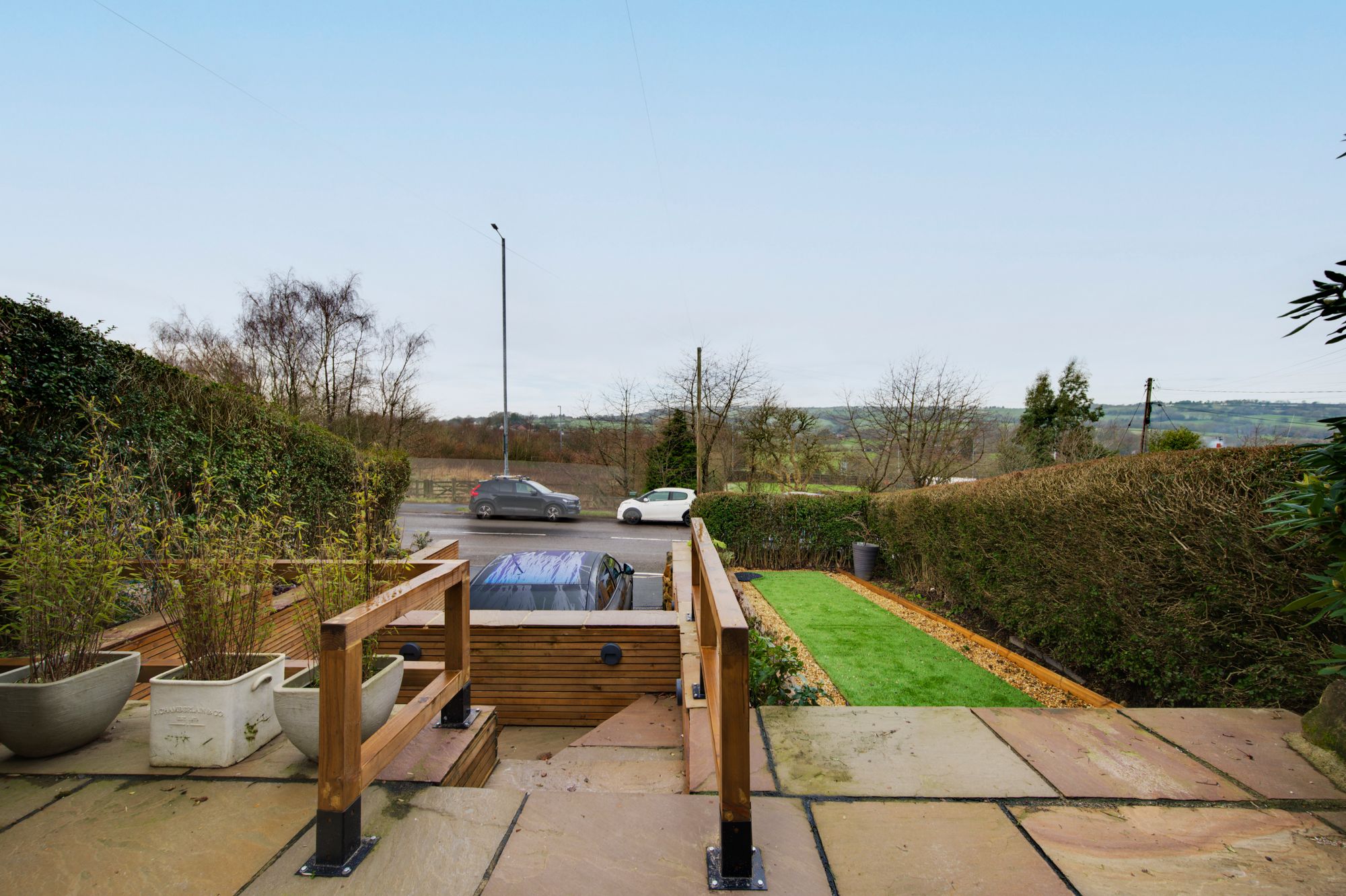 - Generous, fully landscaped plot with low-maintenance gardens and Indian stone patio areas