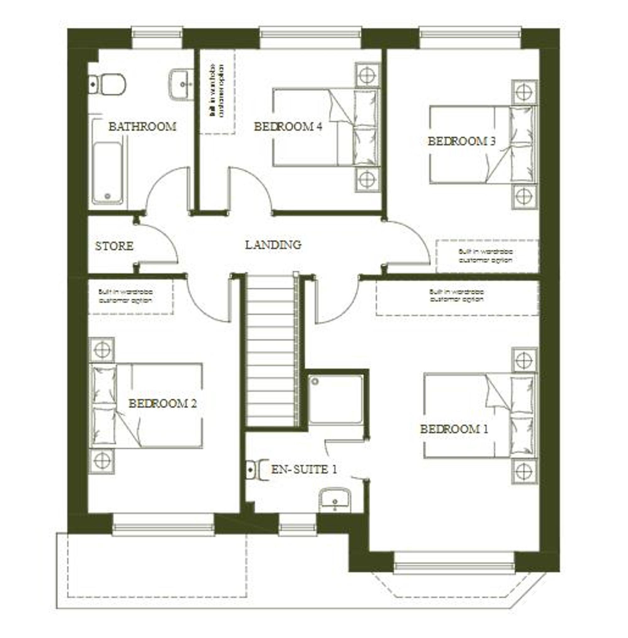 The 'Wentworth' is a family-friendly home that features a spacious open-plan kitchen diner, with French doors, seamlessly bringing an indoor-outdoor connection to the home. The separate lounge, illuminated by a beautiful bay window, offers a serene space for relaxation and quiet moments. Practical amenities like a utility room, cloakroom, and single integrated garage are found on the ground floor, adding convenience to daily life. Upstairs, the primary bedroom boasts an en-suite bathroom for added privacy. Additionally, three more double bedrooms, all complemented by a family bathroom offer larger families the ideal home comforts.